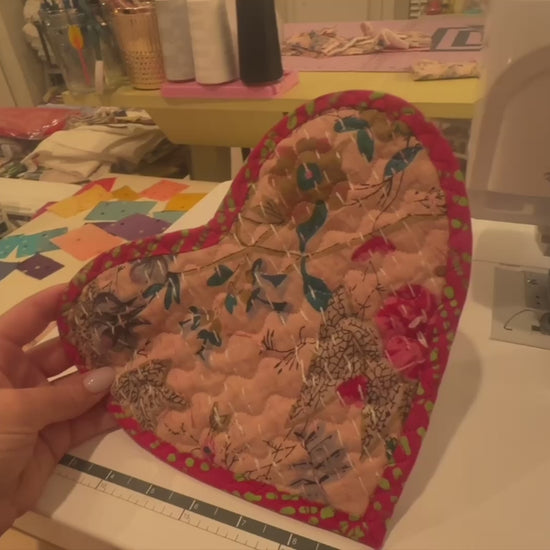 The Pattern contains detailed instructions with color pictures and a heart template. Only basic sewing and quilting skills needed.